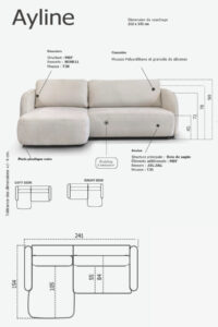 Le canapé ayline accompagne les moments de repos et de partage. Les assises larges offrent un espace confortable pour se détendre. L’angle permet de s’allonger ou de s’installer à plusieurs.