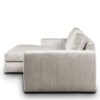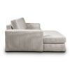 Le canapé d’angle Riviera est disponible en velours côtelé taupe clair et en tissu écru.