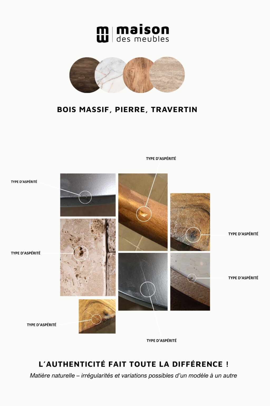Le bois utilisé est travaillé de manière artisanale pour offrir un rendu authentique, chaleureux et texturé. Elle constitue un véritable point d’ancrage visuel pour un salon raffiné.